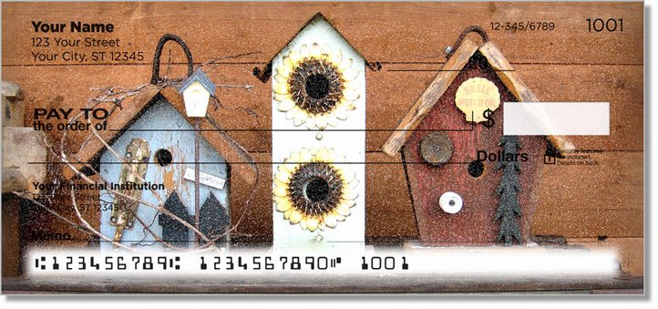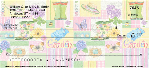Bank checks should contain the identity of the check writer and the bank and Green Box Scroll personalized checks display them prominently. Your name, address and telephone number are printed clearly on Green Box Scroll themed personal checks.